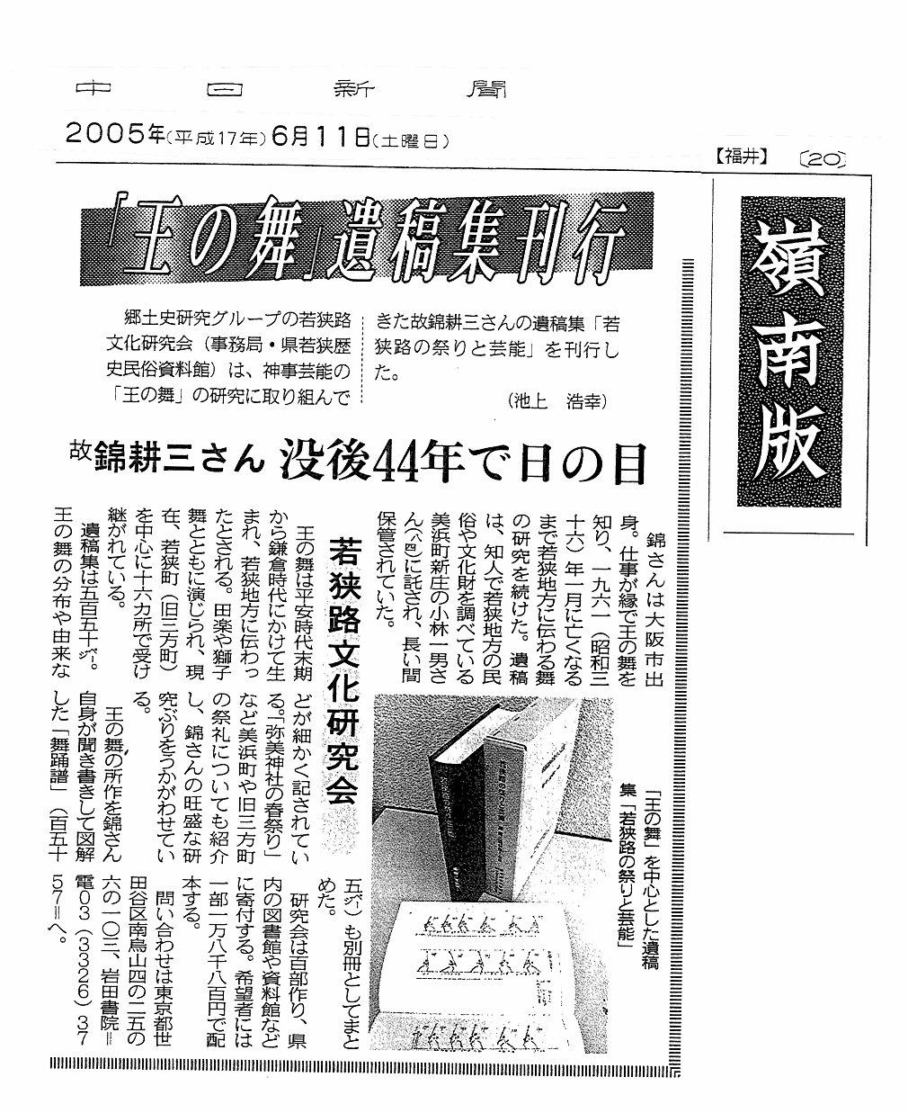 掲載誌:中日新聞「嶺南版」2005.6.11